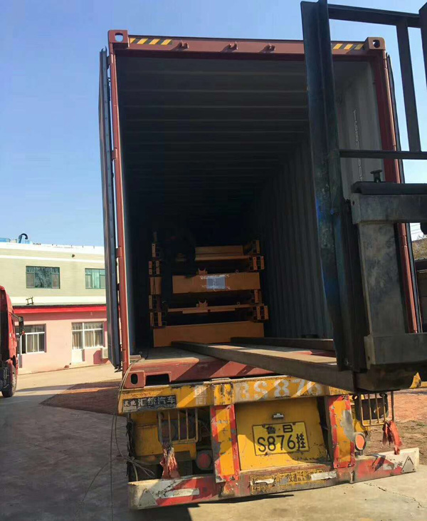 出口的12臺(tái)液壓升降平臺(tái)裝入集裝箱發(fā)走