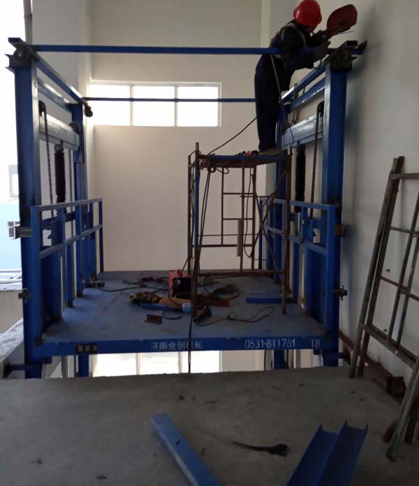 液壓升降貨梯生產(chǎn)制造廠家-濟南金創(chuàng)機械制造有限公司,為威?蛻舳ㄗ龅纳13米,載重5噸的導軌鏈條式液壓升降貨梯,嚴寒天氣下,經(jīng)過安裝師傅加班加點的努力,昨天下午通過了客戶方的驗收工作。