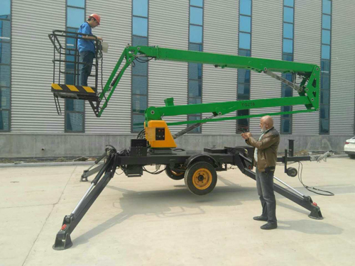 拖車折臂式液壓升降平臺采用新型優(yōu)質(zhì)鋼材,具有強度高、重量輕,結(jié)構(gòu)緊湊等優(yōu)點,其拖車式設(shè)計,易于運輸,可滿足遠(yuǎn)距離高空作業(yè)的需要。折臂式液壓升降平臺采用電動液壓支腿,電動控制升降,可快速架設(shè)且操作安全簡單。工作臺即可升高又可水平旋轉(zhuǎn),易于跨越障礙物到達工作位置,大大增加了工作范圍,是理想的登高作業(yè)設(shè)備。