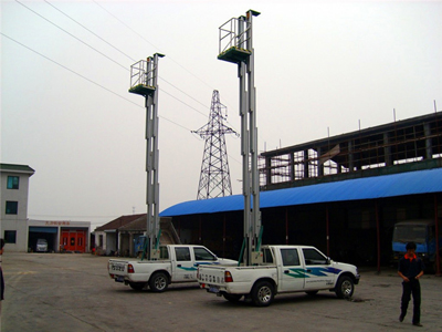 4、采用汽車、三輪車或電瓶車底盤做平臺(tái)底架,利用本車發(fā)動(dòng)機(jī)或直流電做動(dòng)力,既可行駛又可驅(qū)動(dòng)平臺(tái)升降。